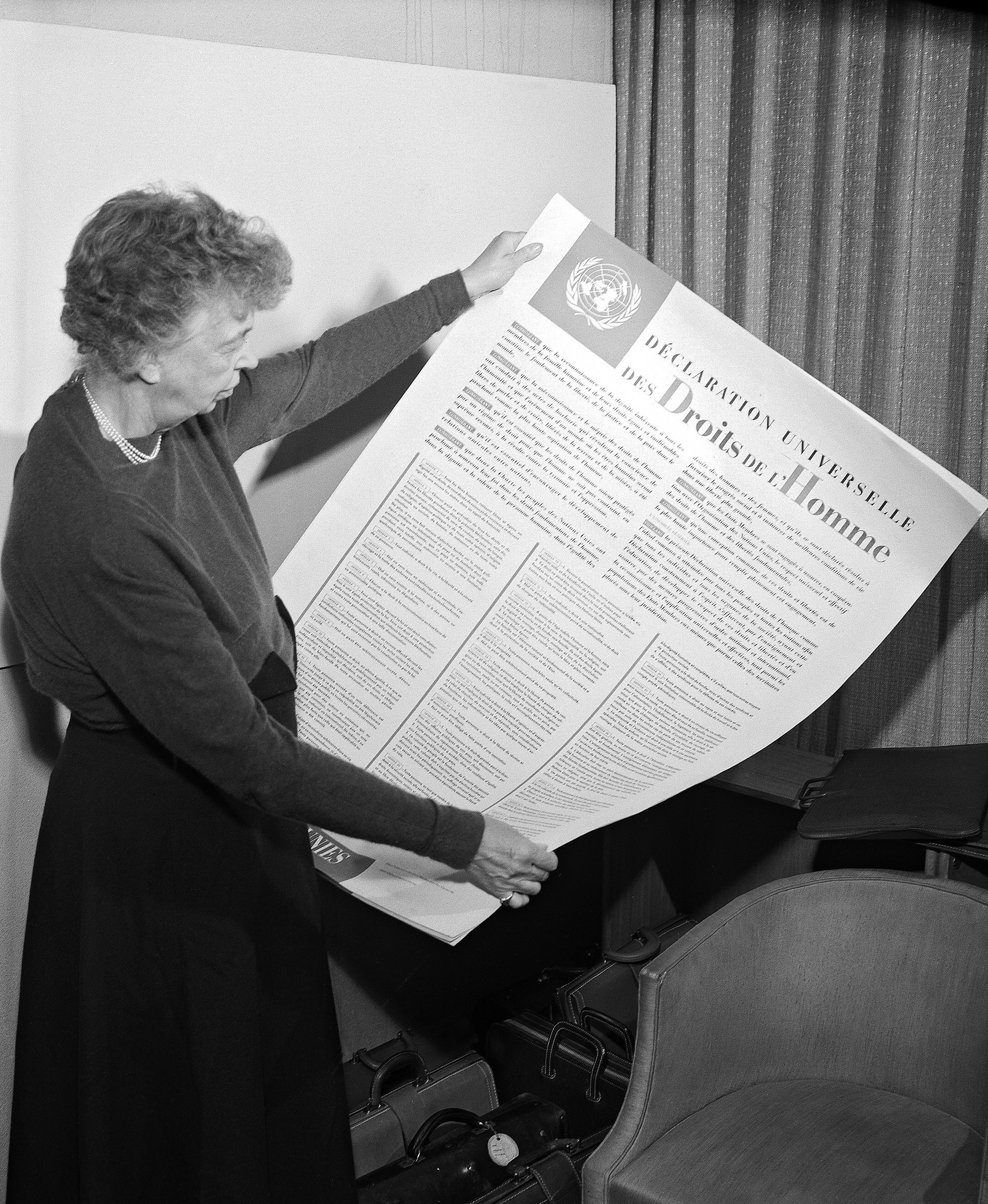 Eleanor Roosevelt a présidé la Commission des droits de l’homme des Nations unies et a joué un rôle important dans la rédaction de la Déclaration universelle des droits de l’homme. Elle est considérée comme l’une des personnes les plus influentes de l’histoire des droits de l’homme.